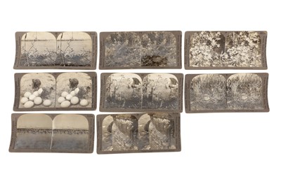 SELECTION OF KEYSTONE VIEW COMPANY AND UNDERWOOD&UNDERWOOD STEREO CARDS, together with home stereo viewer. Keystone view Company stereo views subjects include wildlife studies, ornithology, incomplete set together with original book shaped case. Underwood & Underwood stereo views subjects comprise artworks, architecture, landscapes, and life scenes, locations include Turkey, Egypt, Palestine, USA (Washington DC, Yellowstone Park, Yosemite Valley, Charleston, New Hampshire, San Francisco, Niagara Falls, Florida), Mexico, France (Paris, Fontainebleau), Monaco, Germany, Italy (Venice, Milan, Rome, Austria, Switzerland, Belgium, Spain, the UK (London, Scotland, Wales), Ireland, Norway, Denmark, Russia (St Petersburg). Stereo cards (134), albumen and silver gelatin prints, image size, 75 x 75mm, card size, 180 x 90mm, some examples with typed title and number in card lower margin, publisher name typed in card margins, some with typed title in the negative lower margin, others numbered in ink card recto