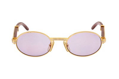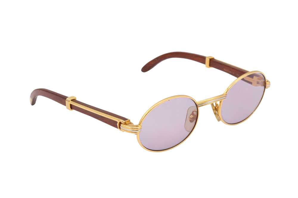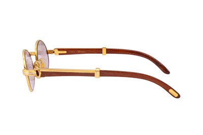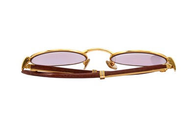 Cartier Giverny Oval Sunglasses, bubinga wood arms, blue lenses, gold plated hardware, 1990's