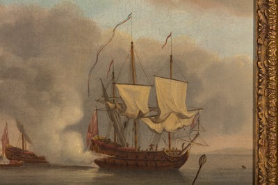 Monamy's early works were mainly seascapes and coastal scenes, but he soon became known for his depictions of naval battles, which were popular. His paintings often featured detailed depictions of ships, including their rigging and sails, as well as dramatic action scenes with smoke and cannon fire as in the present scene.