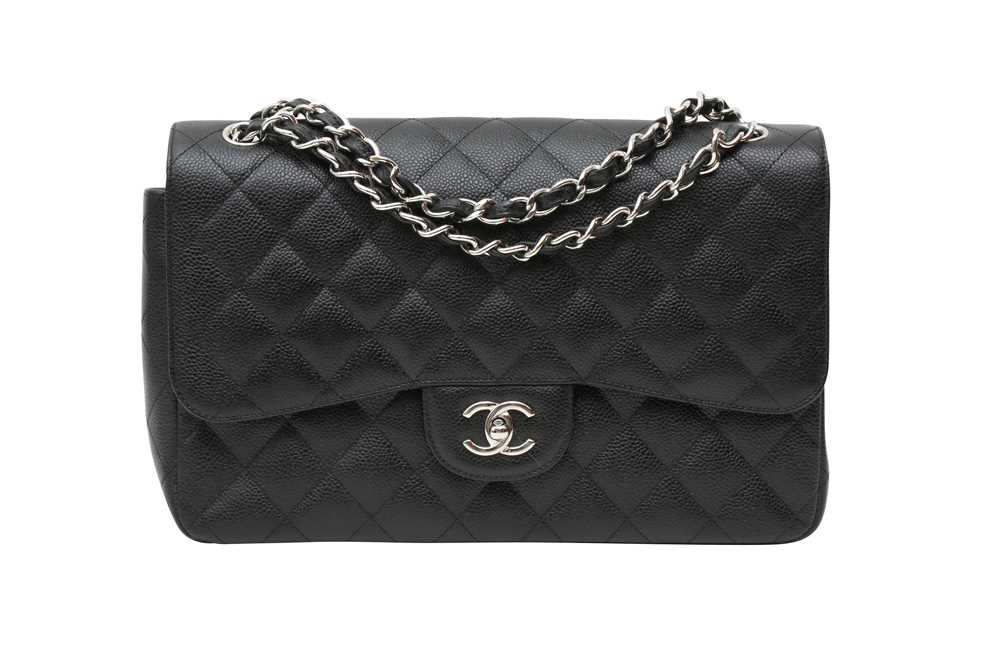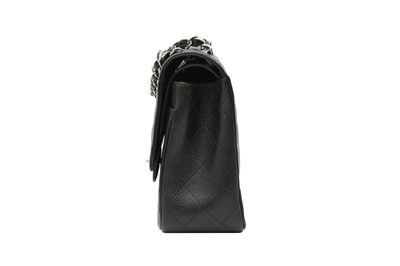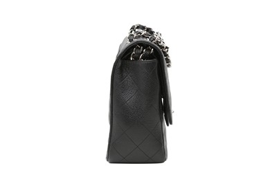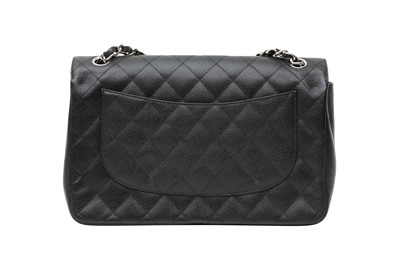 Chanel Black Jumbo Double Flap Bag, quilted caviar leather, silver tone hardware
